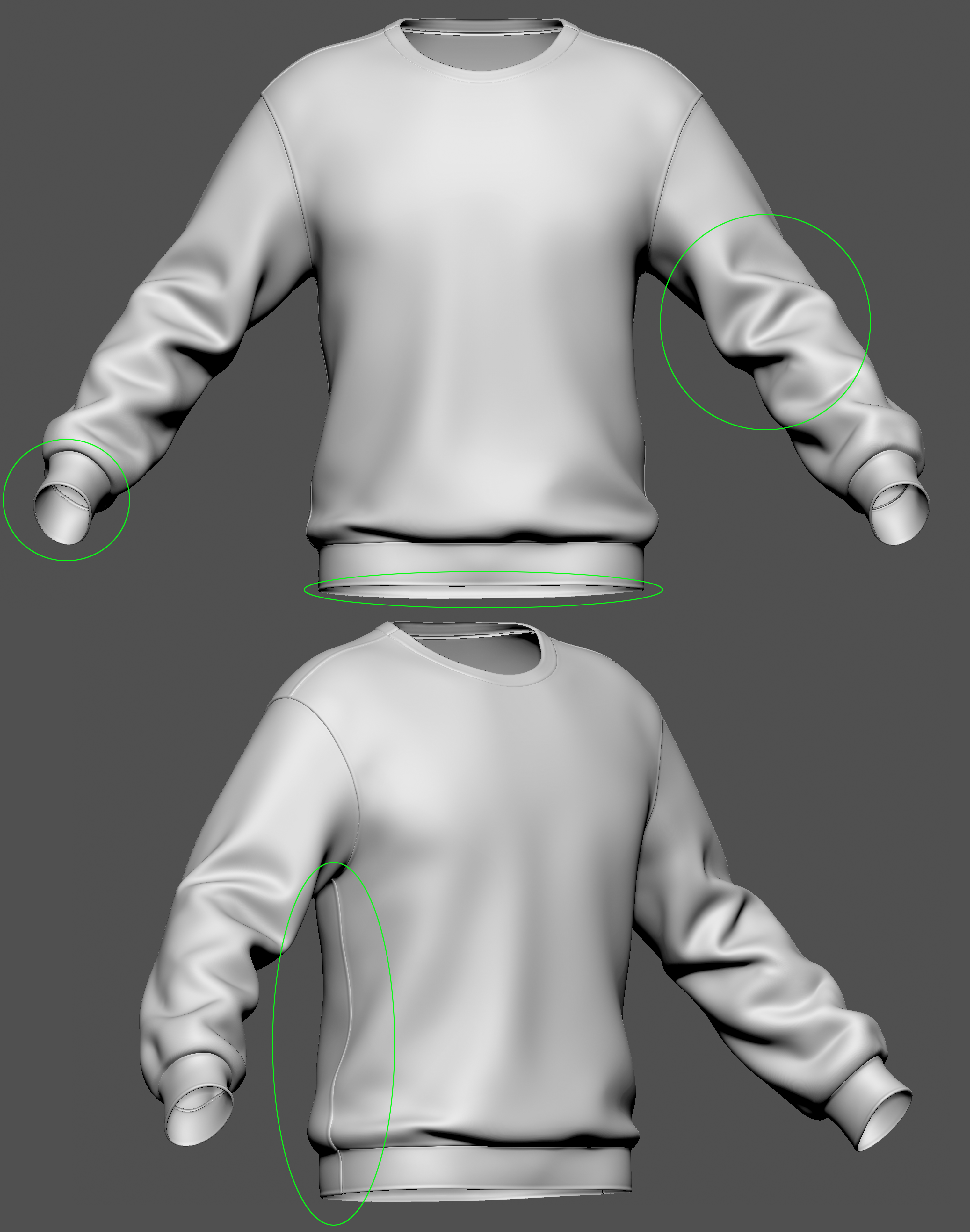 Express the fit and gravitational fold of the clothing.